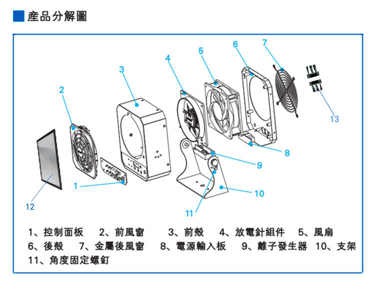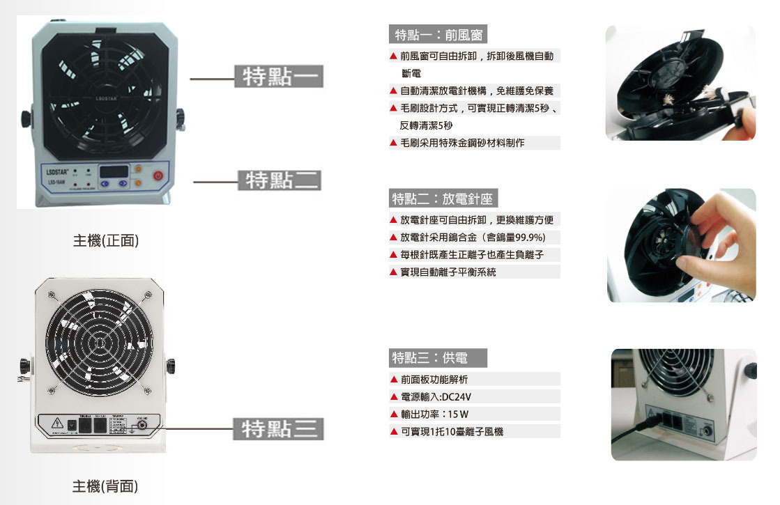 *快速維護(hù):前后網(wǎng)罩和放電針均可快速拆卸,方便清潔維護(hù)和更換